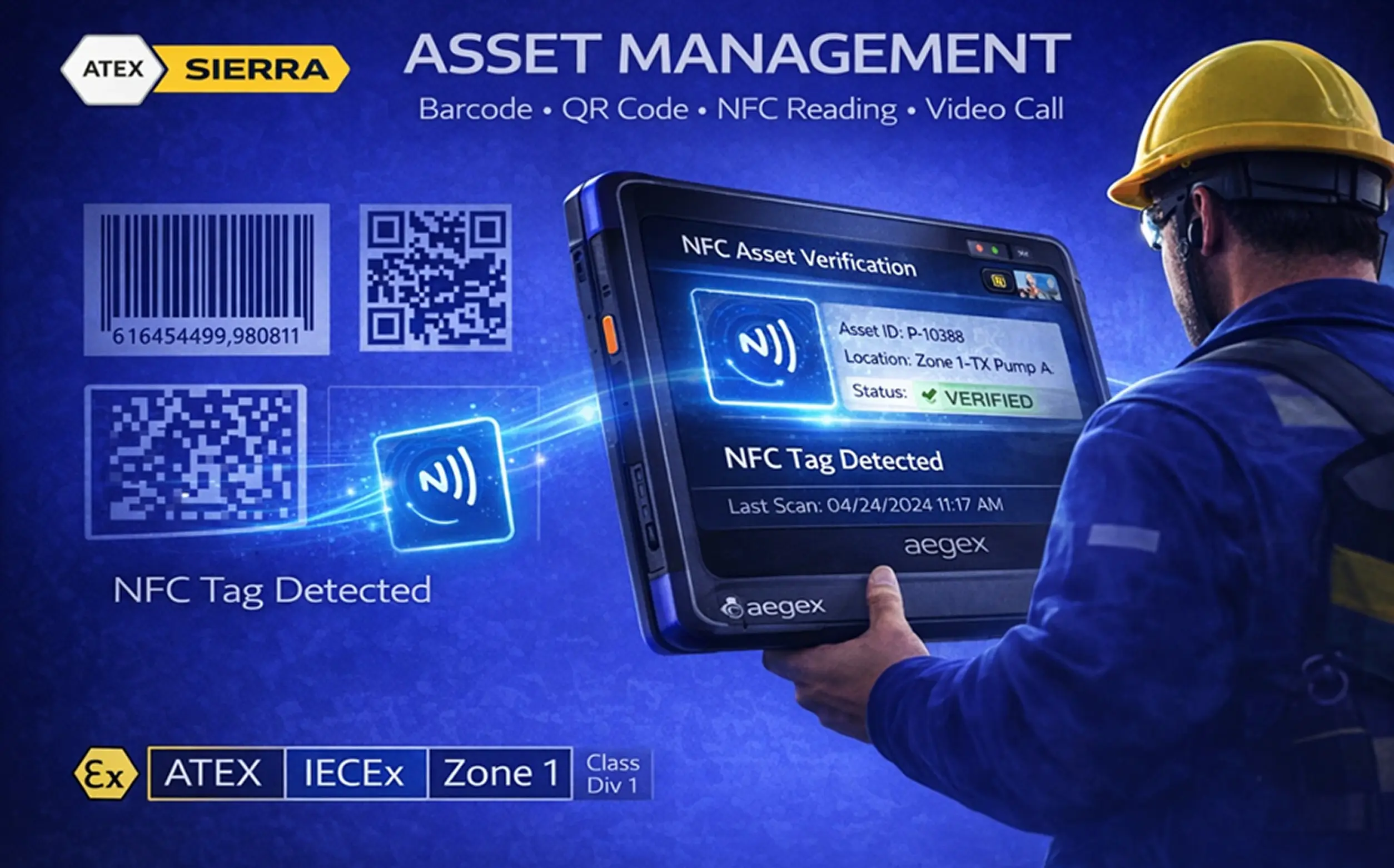 Using the Aegex 100M intrinsically safe tablet, ATEX Sierra enables scan-based asset management directly inside Zone 1 / Div 1 environments—where conventional mobile devices cannot be used.